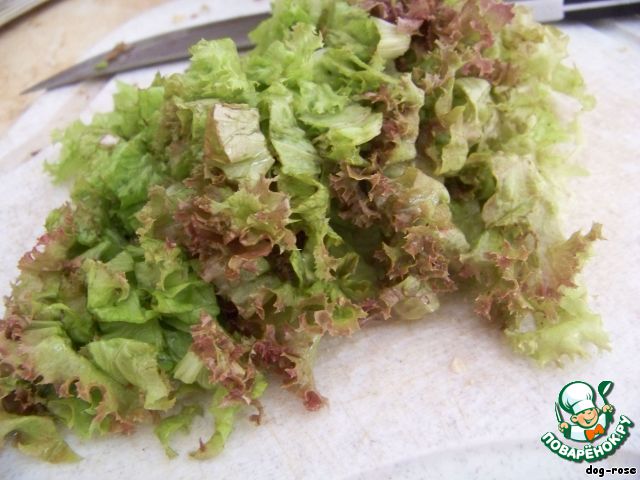 Салат и укроп режем. Вообще, салат часто рекомендуют рвать руками на кусочки.