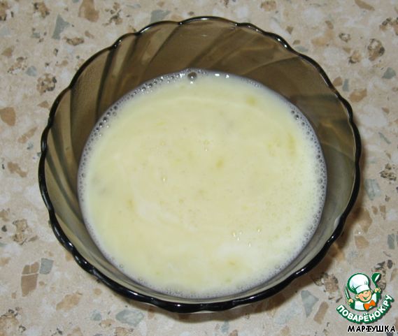 Взбиваем два яйца с молоком. Солим, выпекаем четыре блинчика (у меня столько вышло).