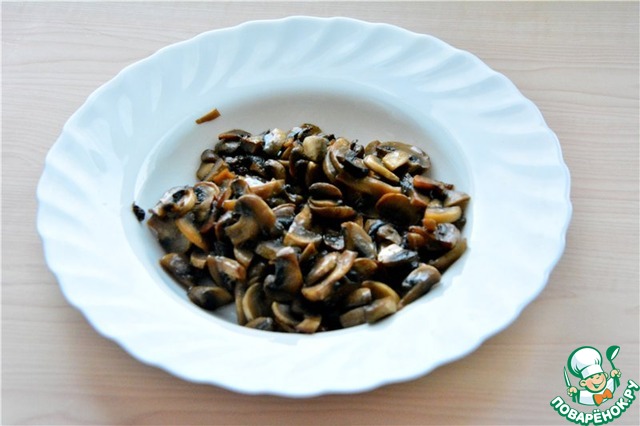 Грибы нарезать и обжарить на растительном масле