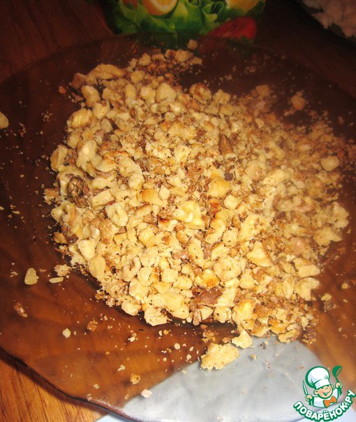 Поставить варить куриную грудку, а тем временем измельчить орехи.