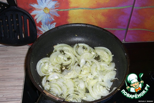 лук полукольцами - обжарить