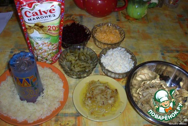 Яйца, свеклу, картофель, сыр - на крупной терке