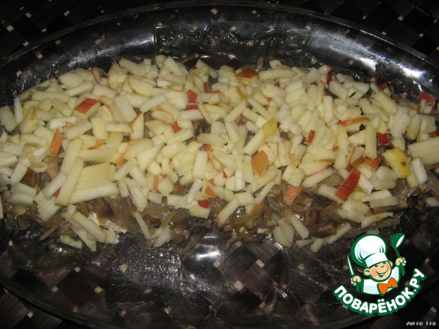 Следующий слой грибы с луком. Остуженные, обязательно!