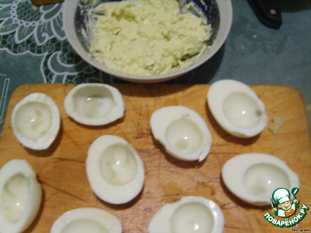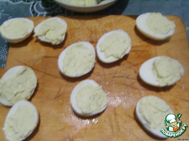 Теперь полученной смесью начиняем подготовленные половинки яиц