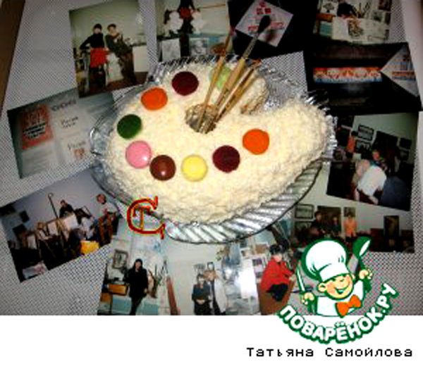 для того, чтобы было в палитре отверстие, ставим на тарелку рюмку и выкладываем салат слоями: