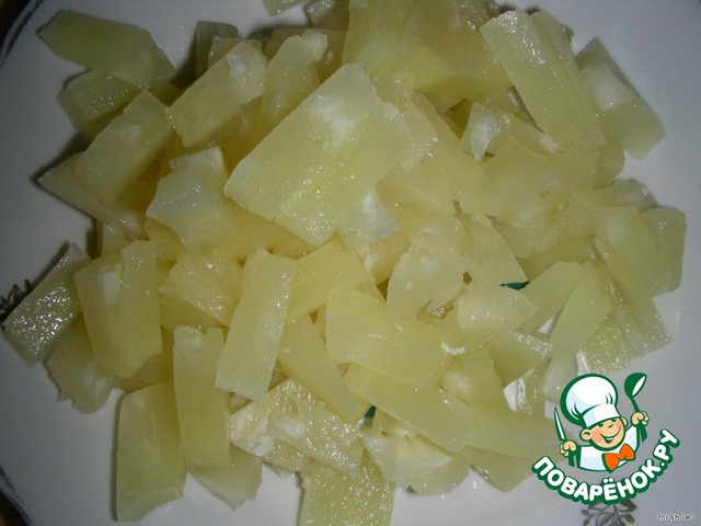 Ананасы нарезать кубиками.