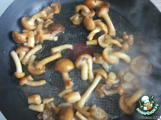 (У меня в этот раз было 300 г замороженных шампиньонов и 200 г опят).