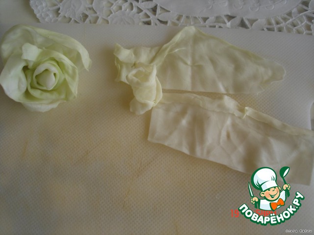 из мягких листочков капусты свернем розы,складывая листочки с разных сторон