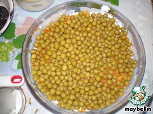 5 слой - консервированный зеленый горошек. Намазать майонезом.