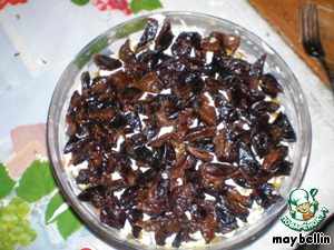 6 слой - чернослив, порезанный пищевыми ножницами на кусочки средней величины.