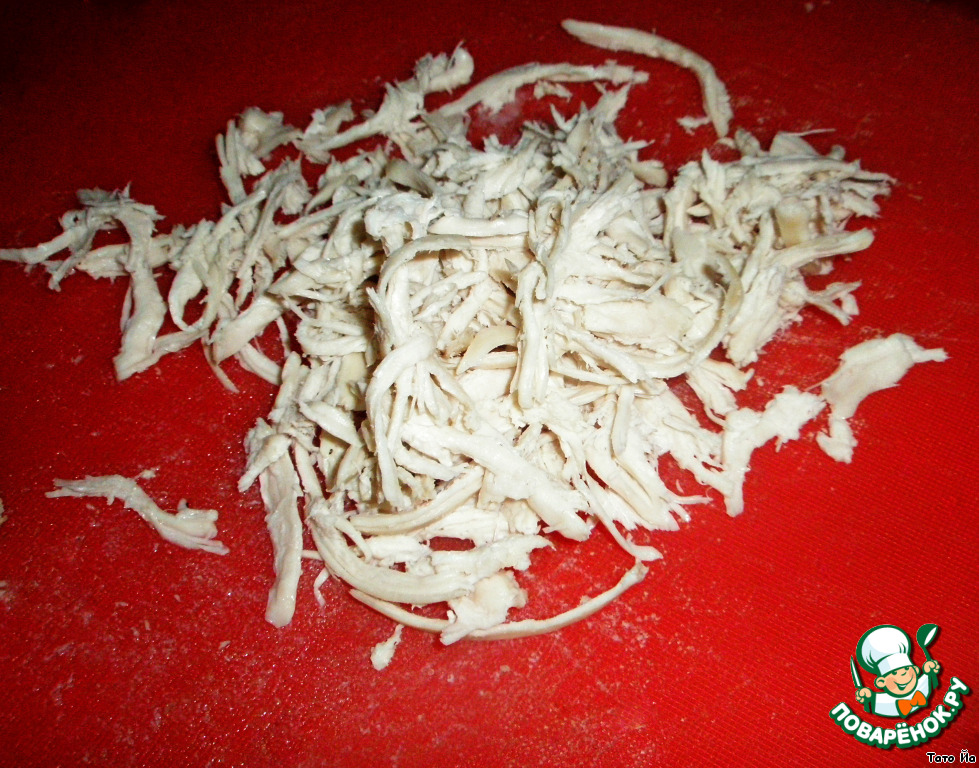 И разбираем мясо на волокна или режем на кусочки среднего размера.