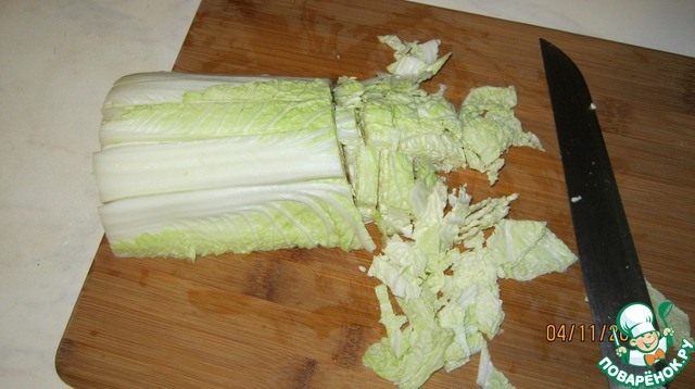 Китайский салат (пекинская капуста) - 1 вилок, моем, режем.