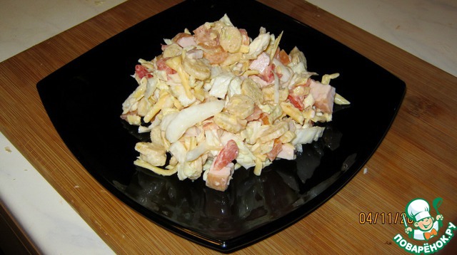 У нас получилась основа салата, которую спокойно можно хранить в холодильнике 1-2 дня,