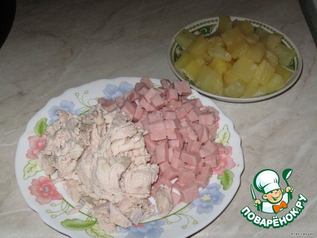 Все ингредиенты мелко порезать и заправить майонезом. Довольно вкусно получается.