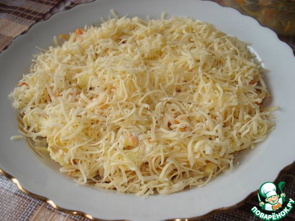 добавить чеснок (натертый на мелкой терке), хорошо перемешать и выложить в салатник