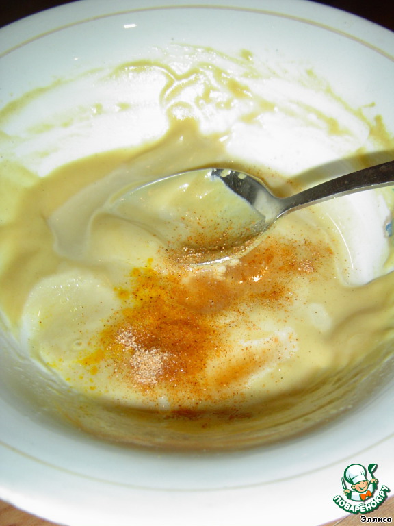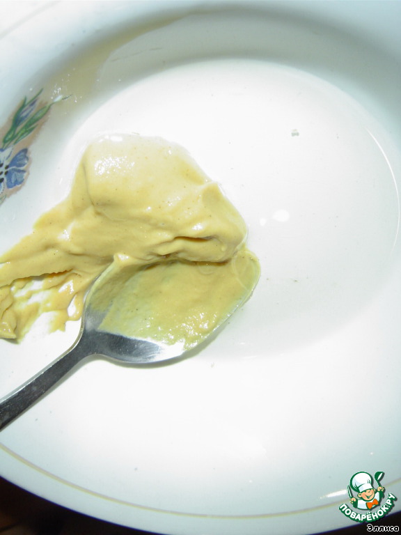Через час процеживаем изюм, в настой добавляем горчицу, растертую с оливковым маслом, уксус, карри, перец и соль.