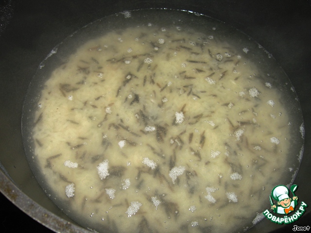 Рис 1/2 стакана промыть и всыпать в кипящую воду - 1,5стак. Соотношение (1:3). Варить 20 минут на слабом огне под крышкой. В конце варки добавить соль морскую по вкусу и дать постоять в тёплом месте до полного впитывания воды.