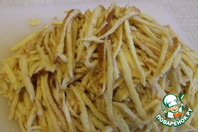 Теперь нужно их нарезать длинненькой тоненькой соломкой.