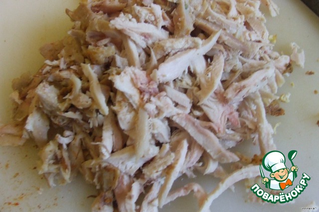 Теперь нужно нарезать так же курицу.