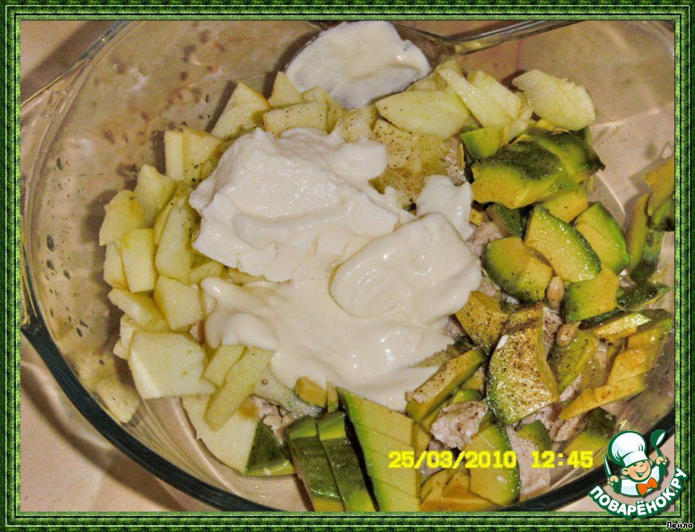 Авокадо с яблоком также нарезать кубиками и полить соком лимона, чтобы не потемнели.