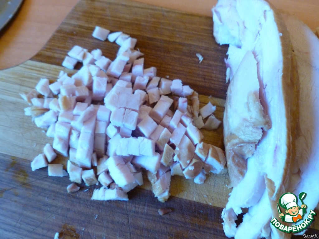 Итак, приступим: нарезаем кубиками куриную грудку...