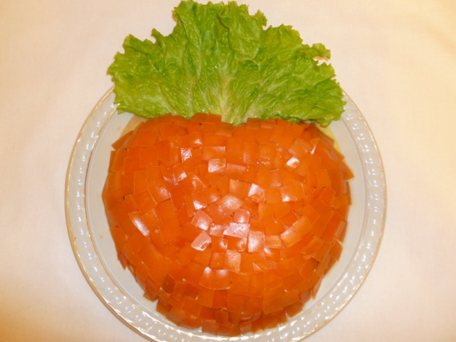 все перемешиваем, заправляем майонезом и выкладываем на тарелку,