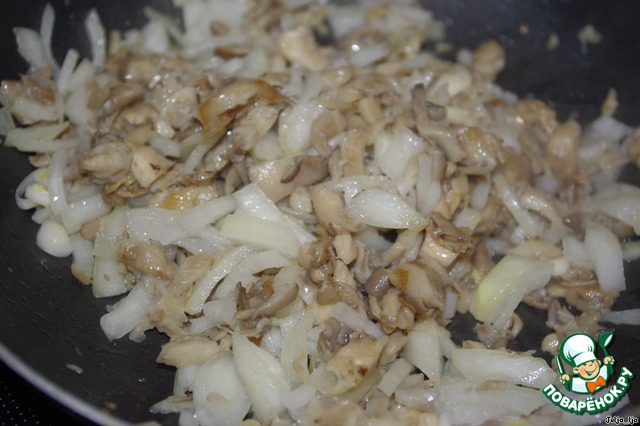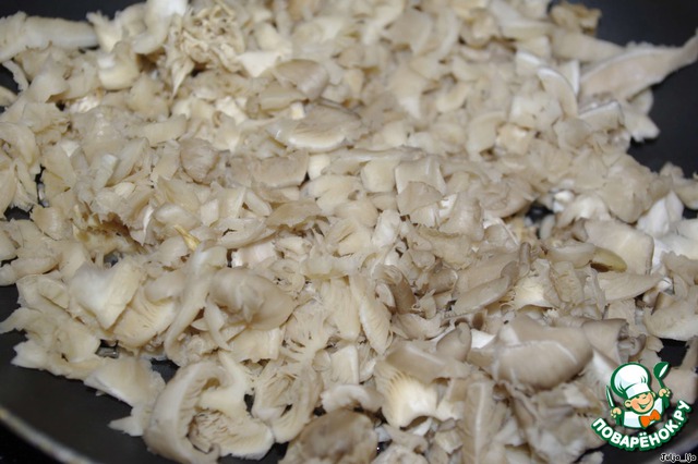 Грибы нарезаем соломкой и обжариваем на небольшом количестве растительного масла.