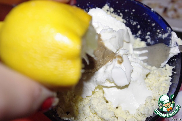 Добавляем сметану, горчицу и лимонный сок. Солим - по вкусу. Можно добавить немного сахара.