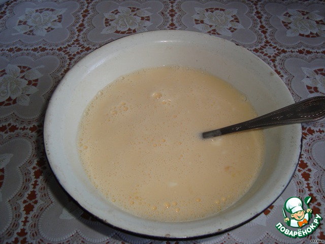 Рецепт я вычитала в одном из кулинарных форумов. Кол-во продуктов указано не было. Поэтому ингредиенты указываю не по весу, а поштучно. Яйцо взбиваем с 1 ч.л. майонезом.