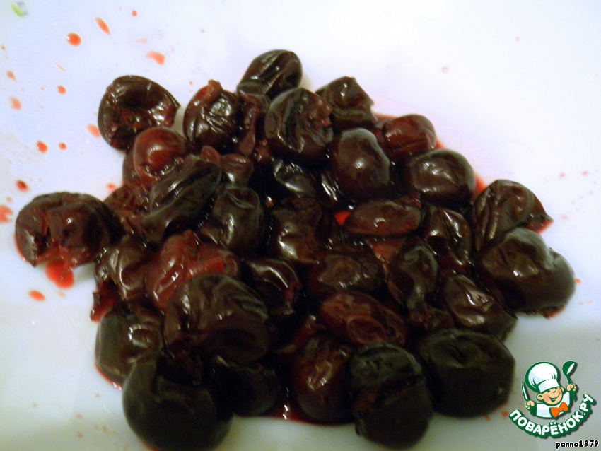 Небольшое лирическое отступление для тех, у кого, как у меня, вишня замороженная с косточками. Не забудьте одеть перчатки перед тем как вынимать косточки, иначе будете потом "наслаждаться" видом черных ногтей :)