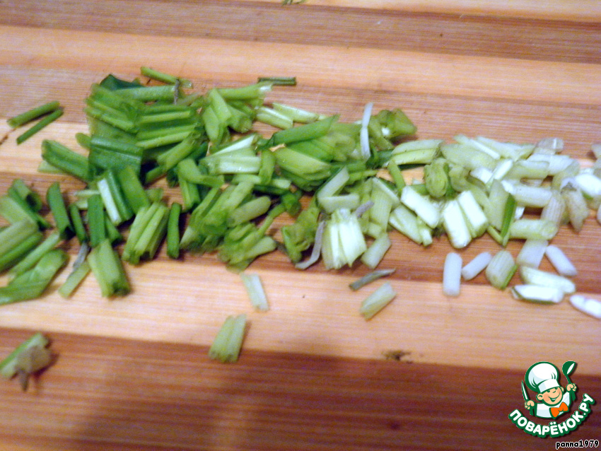 Зеленый лук также помыть, обсушить и мелко порезать.
