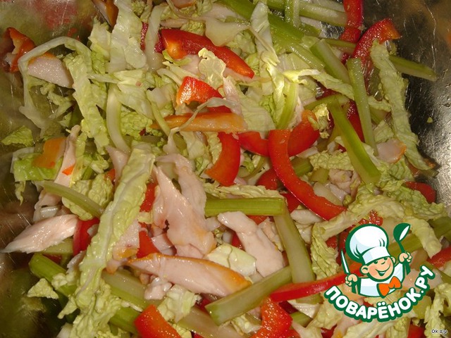 Салат из копченой куриной грудки с савойской капустой "Легкий экспромт"