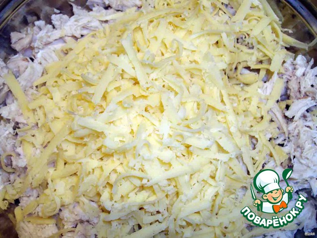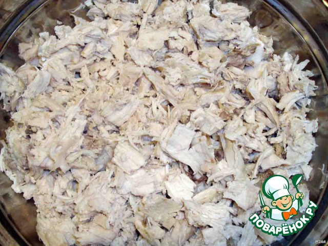 Отвариваем куриное филе, нарезаем. нарезка - по вашему вкусу, можно кубиками, можно соломкой.