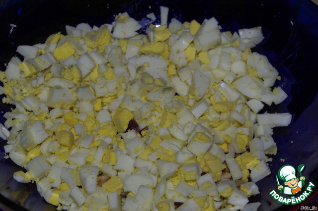 Нарезаем яйца кубиками.