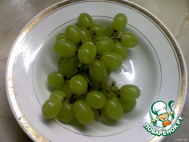 Виноград помыть и порезать, если виноград мелкий - пополам, если крупный-на четыре части.
