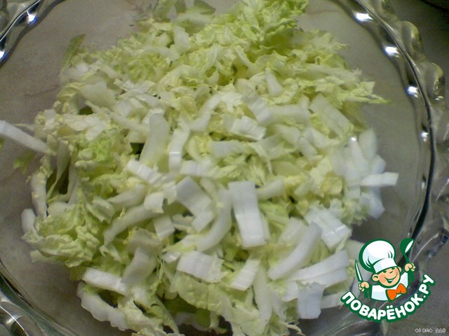 Китайскую капусту мелко нашинковать.