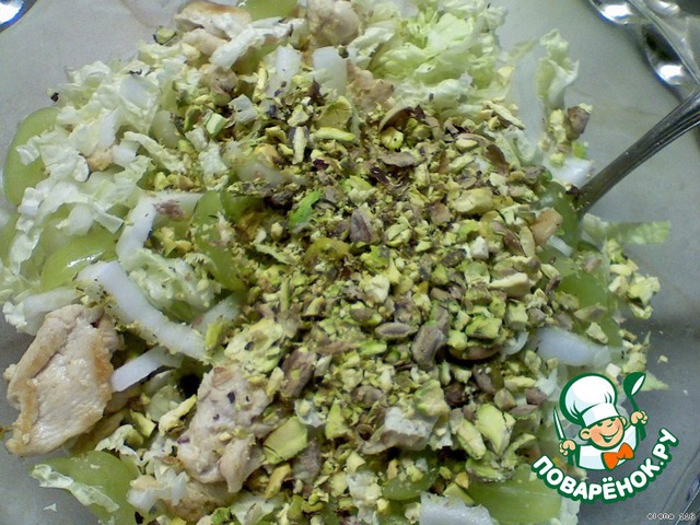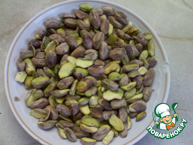Фисташки измельчить. Я это сделала с помощью ступки.