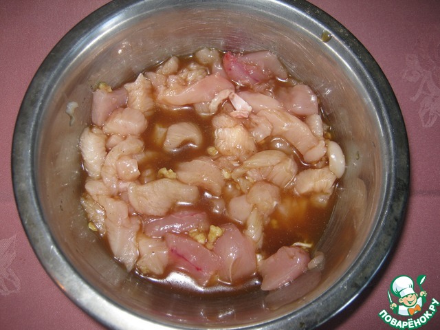 Замариновать мясо в маринаде 30 минут.