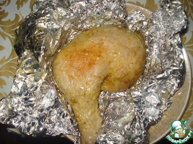 Куриный окорочок натереть солью и приправами для курицы, завернуть в фольгу и запечь в духовке, можно его конечно отварить, но вариант с запекание мне нравиться больше.