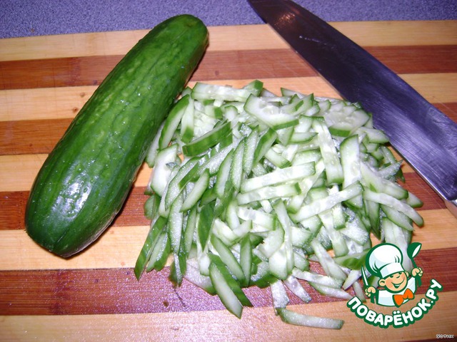 Нарезать соломкой ( иногда я делаю этот салат без огурцов)