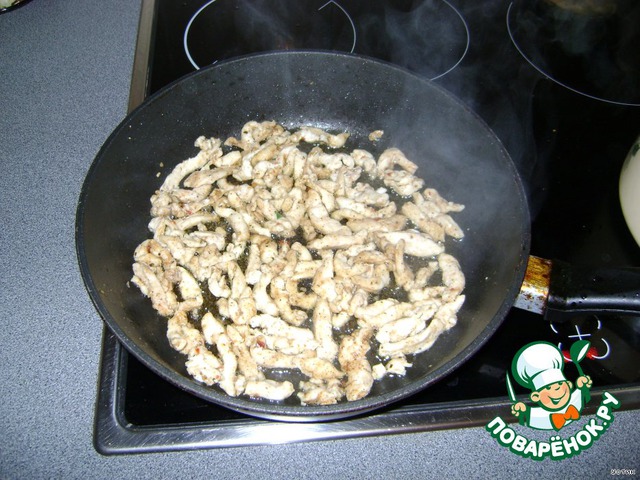 Обжарить, вместо курицы можно взять ветчину, тоже будет вкусно.