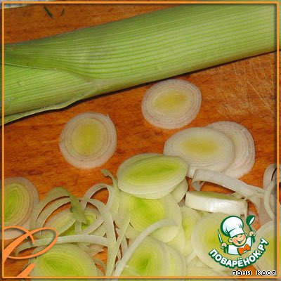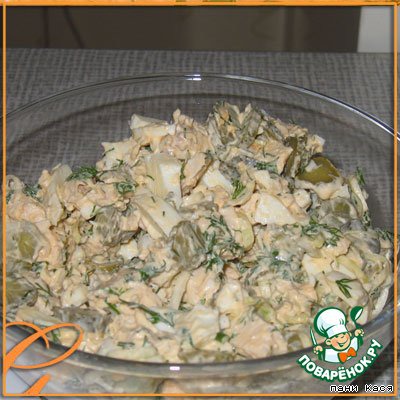 Салатик с курочкой, маринованными огурцами и луком пореем