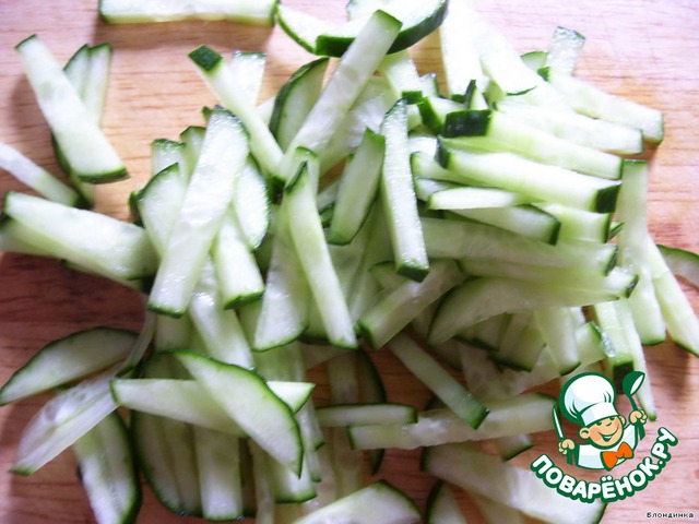Свежий огурец нарезаем соломкой