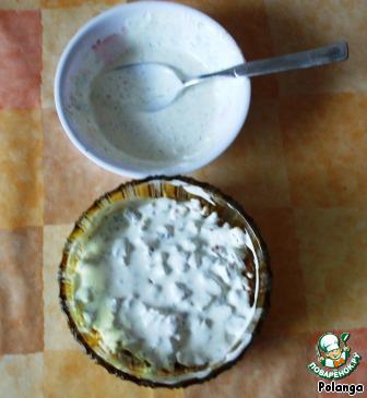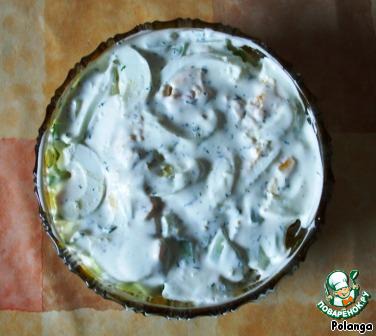 Приготовить соус: майонез смешать со сметаной, добавить мелко нарезанный укроп.
