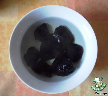 Отварную курицу порезать кусочками, выложить на чернослив.
