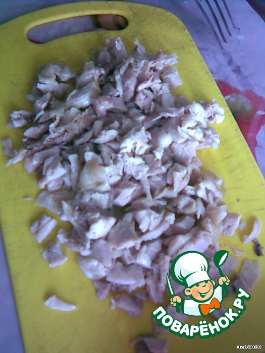окорочок мелко порезать.Смешать все составляющие,если надо добавить соль.