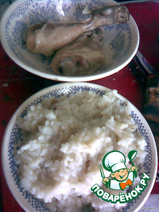 отварить окорочок со специями(я беру травы для птицы от Kamis,гранулированный чеснок,соль,душистый перец).