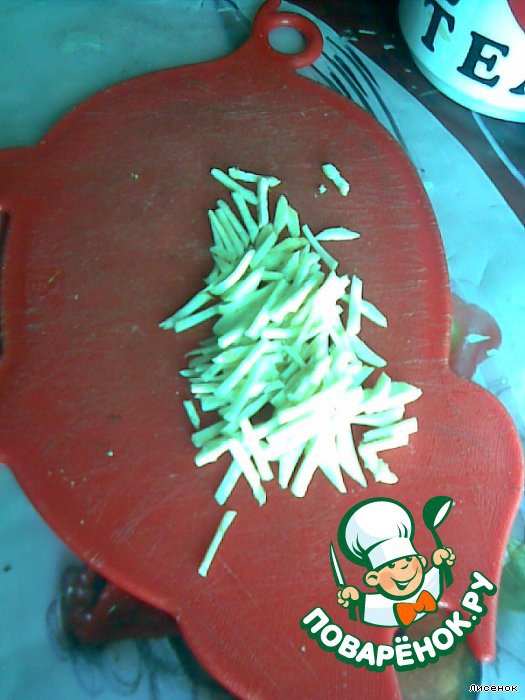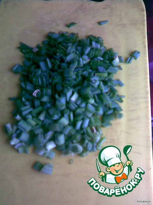 зеленый лук порезать мелко и в салат.Заправить майонезом или вашей любимой заправкой.