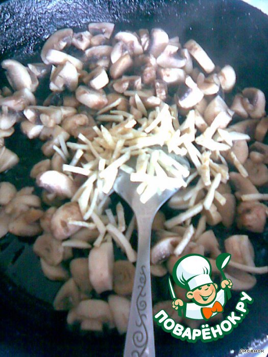 грибы обжарить(+соль,перец) и добавить к ним сельдерей,протушить все вместе 10 минут.