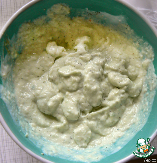 К авокадо добавить йогурт, сметану, чеснок, пропущенный через пресс, соль, горчицу и приправы. Измельчить все до состояния пюре (блендером, вилкой или измельчителем). Все ингредиенты для салата смешиваем и наслаждаемся вкусом.